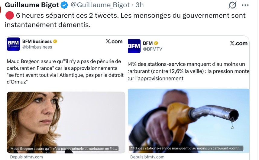 Le gouvernement (via le Premier ministre Sébastien Lecornu) a reconnu l’existence de « surplus fiscaux » générés par la flambée des prix des carburants (due à la crise énergétique). Il propose d’utiliser ces recettes supplémentaires pour financer l’électrification de l’économie, plutôt que de baisser massivement les taxes à la pompe.Ce qui s’est passé :Pendant des semaines, le gouvernement et ses porte-parole niaient fermement toute « cagnotte » ou recette fiscale exceptionnelle liée à la hausse des carburants. Ils rejetaient les accusations du RN qui les traitait de « profiteurs de crise ».