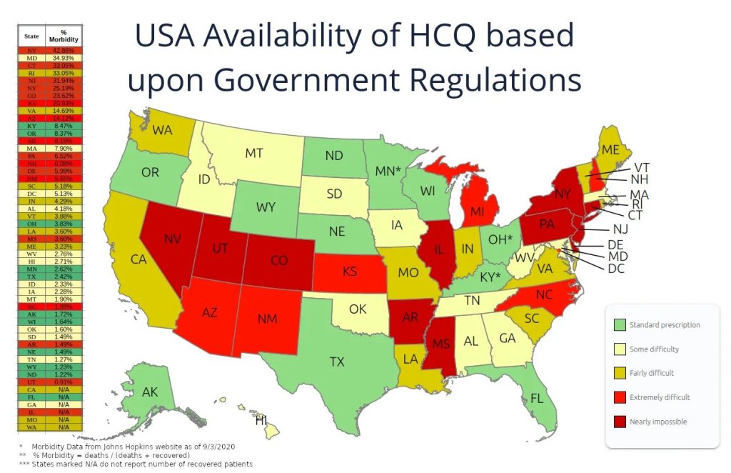 Etats Unis: le taux de létalité par état dépend de l’utilisation d’hydroxycloroquine