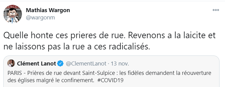 Le terme de terroriste n’a pas encore été employé mais il est sous-entendu dans les tweets de Wargon médecin de la bande à Véran et époux de ministre…