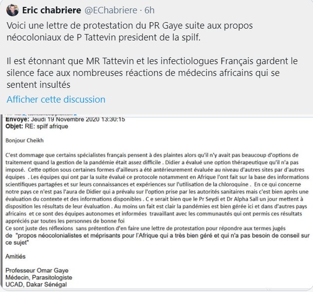 Quelle condescendance à l’égard de ces médecins Africains ! Oui état d’esprit néocolonial ! Tous ces mandarins qui ont empêché les malades de bénéficier du protocole Raoult en début de maladie, devront rendre des comptes pour les milliers de morts dont ils sont à l’origine.