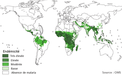 Endémicité très élevée en Asie du Sud, Afrique subsaharienne mais pas Afrique du Sud, Nord du Brésil Guyane fcse, amérique centrale et sud du Mexique