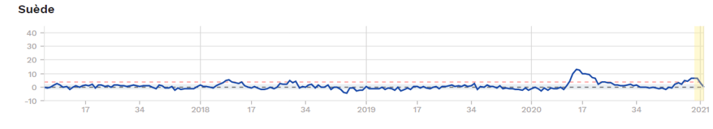 Moins de surmortalité en Suède sans confinement qu’en France.