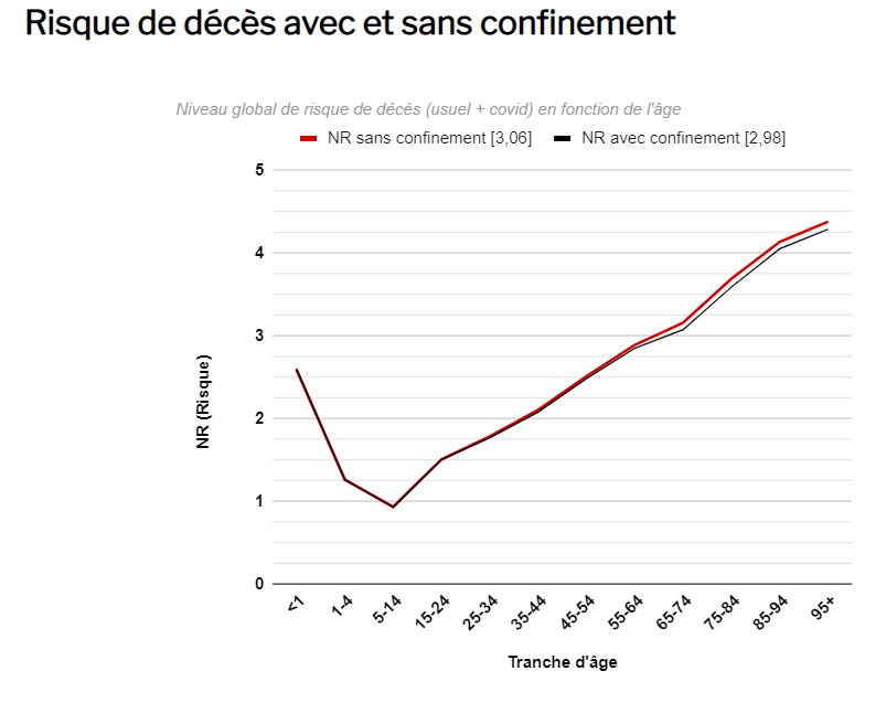 Quand au confinement,  la réduction des décès (avec et sans covid) n’est pas si évidente : elle dépend de …l’âge !