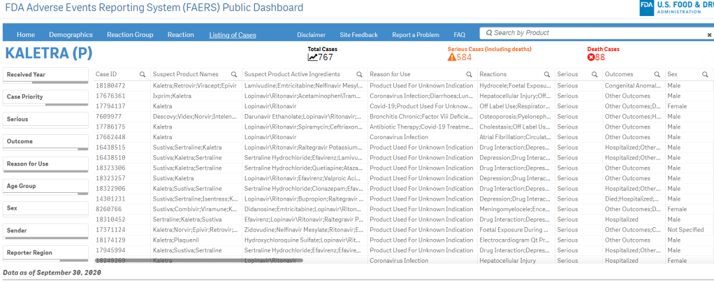 88 décès POUR LE KALETRA Covid) sur seulement 767 cas