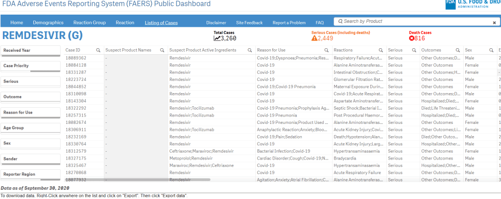816 déces pour le remdesivir utilisés contre le covid 19, cas imputables à cette seule molécule sur 3260 cas