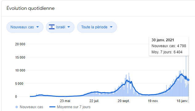 Vu sur « Swiss Policy Research » un article un peu plus optimiste « ….mais les chercheurs israéliens estiment que le taux d’infection chez les citoyens vaccinés est déjà de 30 à 60% inférieur à celui des personnes non vaccinées, et ils espèrent voir une réduction significative des hospitalisations d’ici février. L’un des principaux prestataires de soins de santé israéliens a rapporté que les taux d’infection et d’hospitalisation parmi les 50000 citoyens qui avaient reçu leur première dose de vaccin à la mi-décembre étaient déjà en baisse d’ environ 60% , ce qui est une nouvelle très encourageante » On ne sait plus quoi penser…