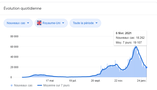 La différence majeure c’est que Matt Hancock en Uk a cédé sur la distribution de la vitamine D après avoir menti à ce sujet et subit d’énormes pression. Distribèé en Ehpad et aux anciens oui ça contre le confinement et mortalité et cas redescendent plus vite.
