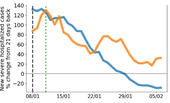 L’évolution des cas sévères comparée à la situation 21 jours auparavant pose problème . Pourquoi cette dégradation pour les moins de 60ans à la fin janvier, comparativement au début janvier ?