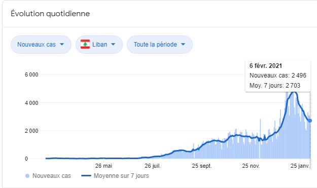 Paradoxalement au Liban, le voisin qui n’a pas les moyens de vacciner , enregistre un recul plus rapide qu’Israël :