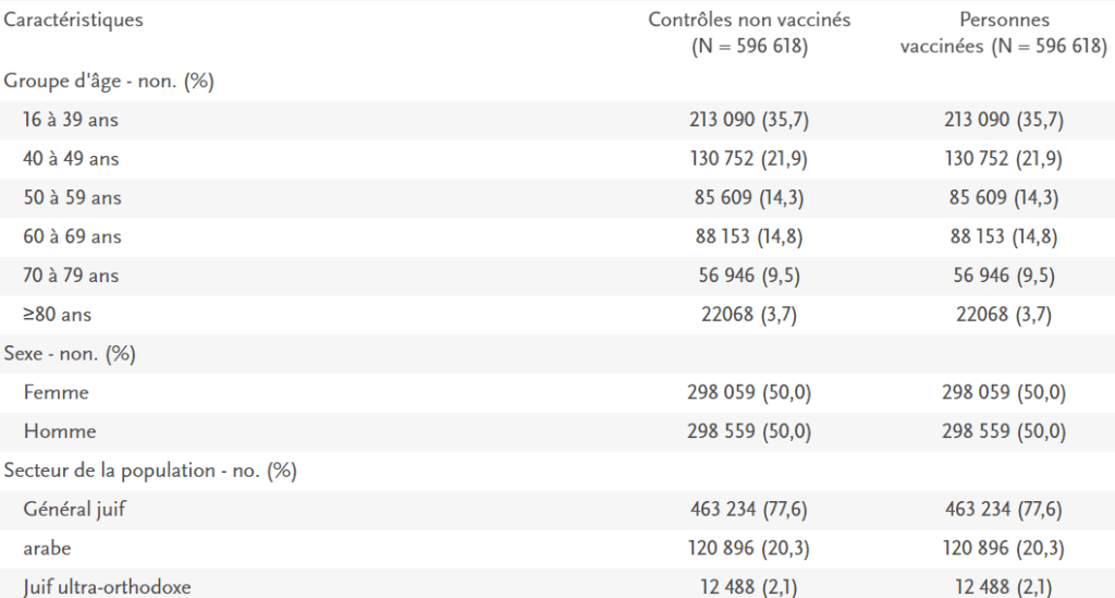 Chaque groupe d’étude comprend 596 618 personnes, un de vaccinés et un de non vaccinés.