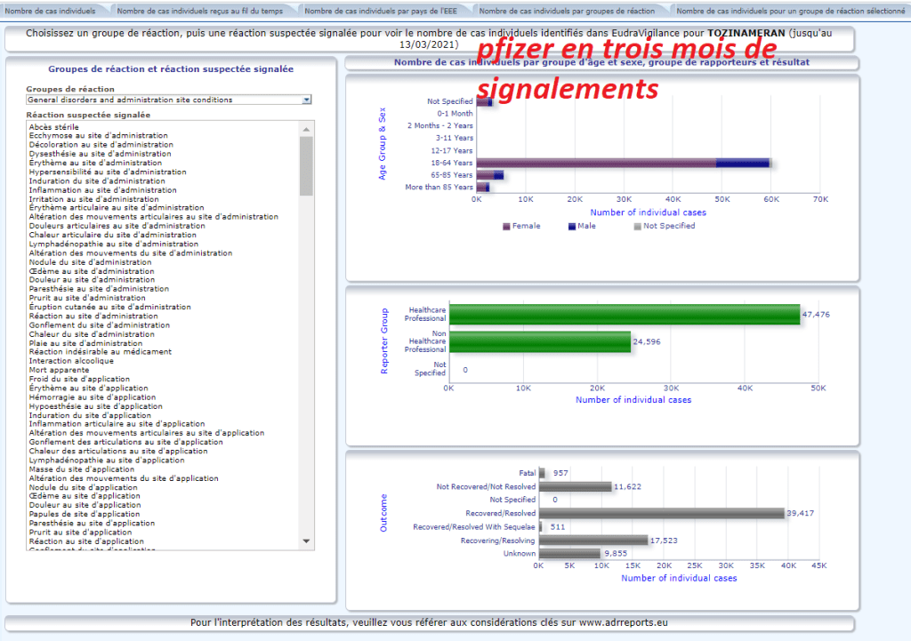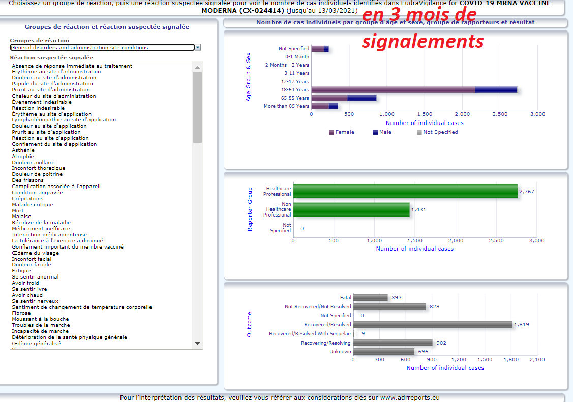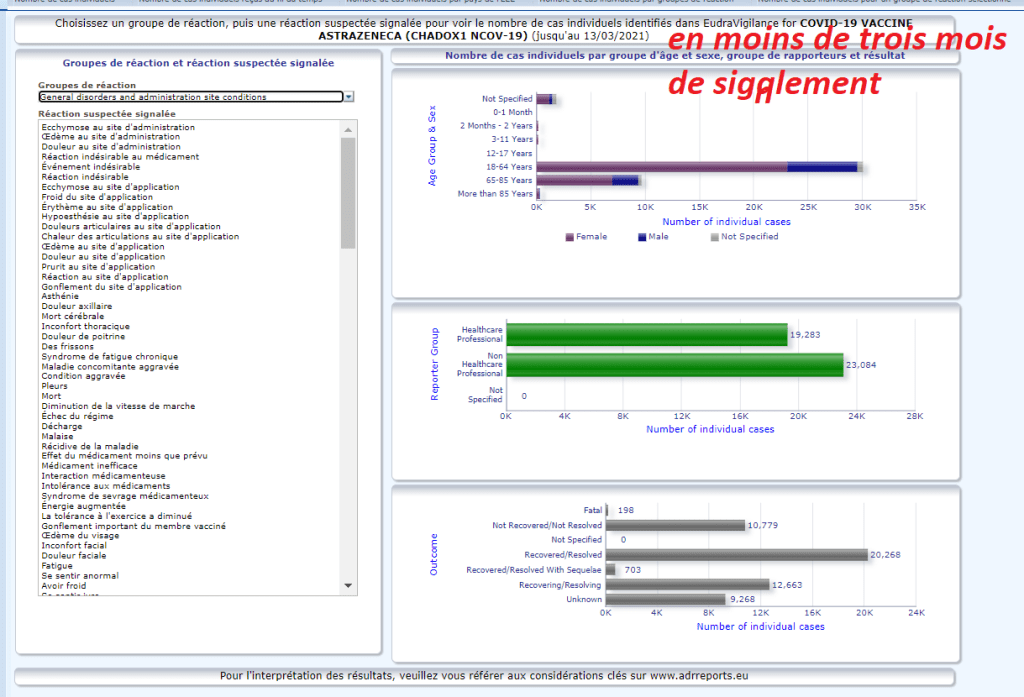 Pour cette seule cause on comptabilise pour les trois vaccins covid :1488 en un an