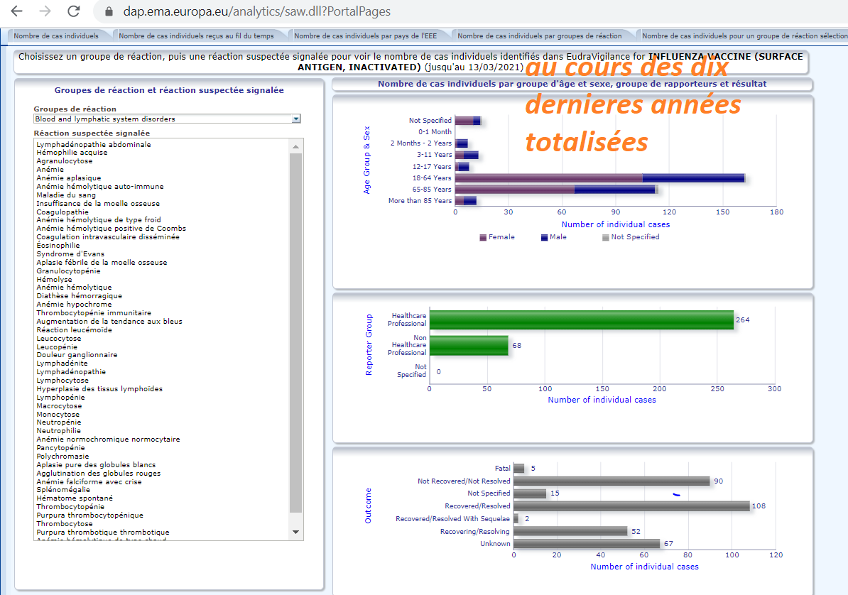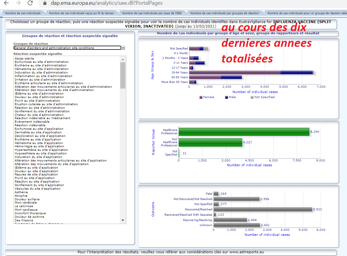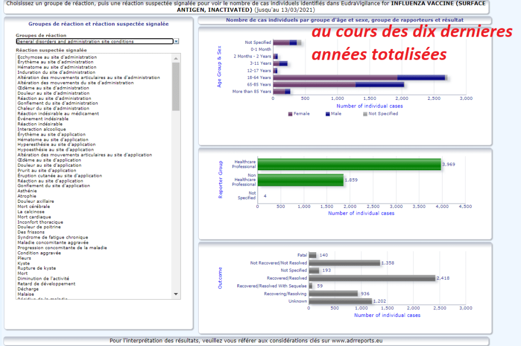 Que celà plaise ou non il y a bien 180 000 effets secondaires même si la responsabilité des vaccins n’est pas officiellement établie et ce en trois mois contre 40 000 pour la grippe en plus de dix ans .
