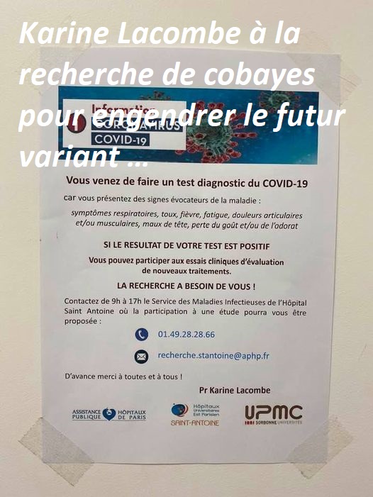 7 Responses to LES QUARANTE CINQ SECONDES D’INTELLIGENCE D’OLIVIER VERAN et Karine Lacombe à la recherche de cobayes pour engendrer le futur variant ……