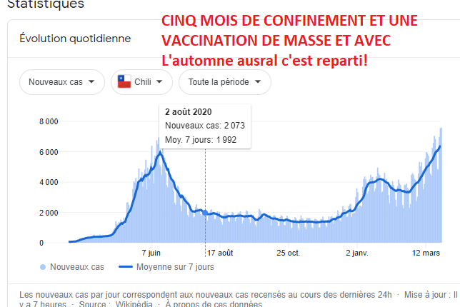 15 Responses to Mauvaise nouvelle:Chili, la stratégie vaccination , confinement strict fait un bide…Bonne nouvelle, un miracle à l’Ehpad des écureuils en Charentes