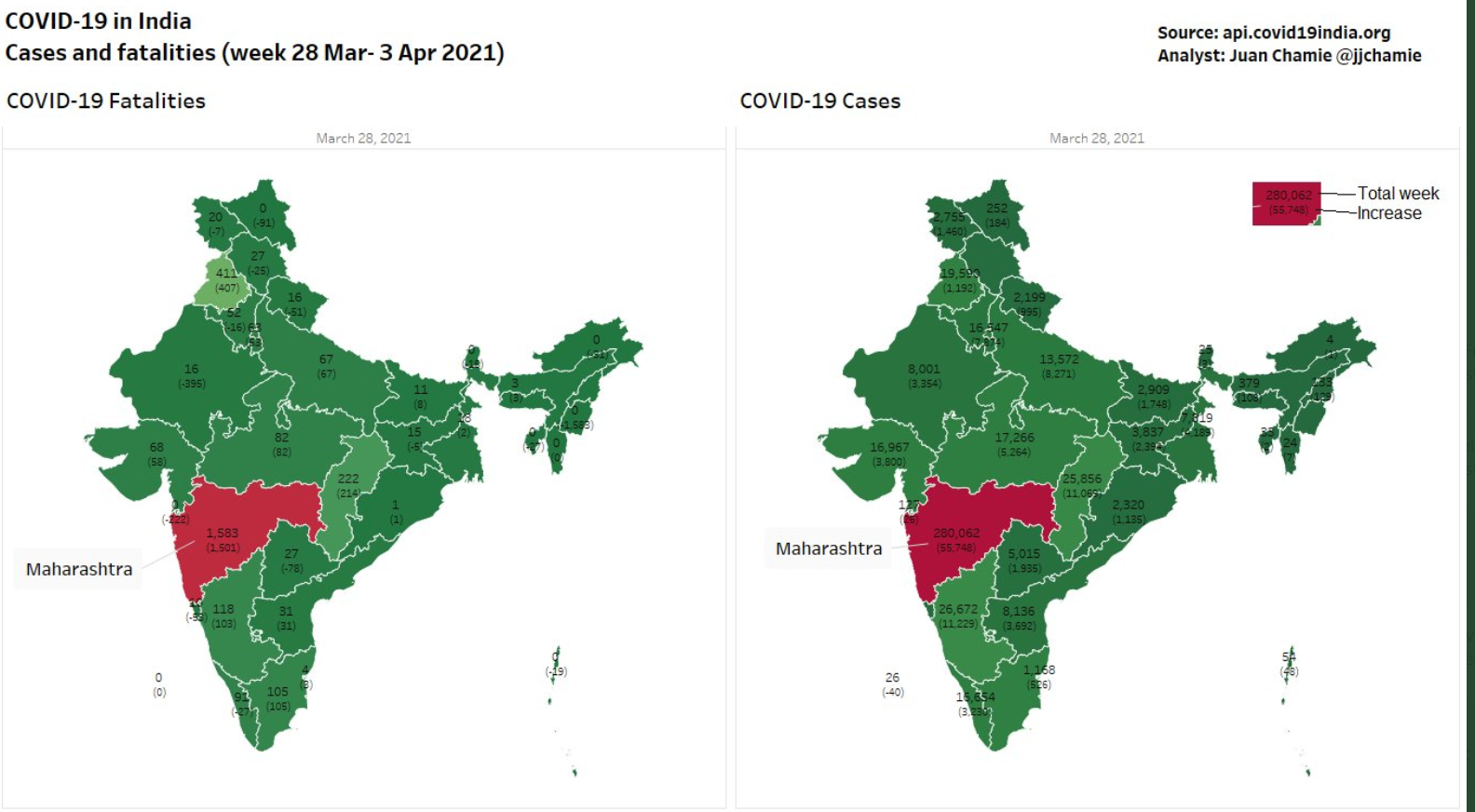 L’inde c’est le pays de l’hydroxychloroquine et actuellement de l’ivermectine Mais un état le Maharashtra (Mumbay) se distingue des autres : plus de 10% de la population adulte y est vaccinée à ce jour ( 6% d’indiens vaccinés dans le pays) . Allez savoir pourquoi  ce même état connait une progression exponentielle des cas de covid associés à un nouveau variant.
