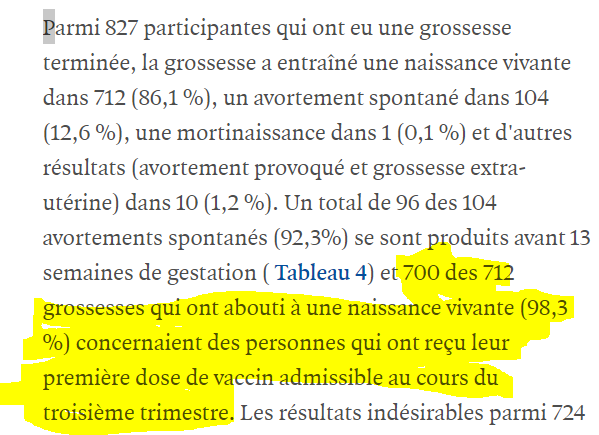 Les femmes enceintes avaient été écartées de la phase 3 des essais Pfizer mais un article rassurant du mois de mai indiquait que les avortements spontanés n’étaient pas plus fréquents que ce que l’on observe habituellement. Pensez donc sur 827 grosses terminées on ne comptait 12,5%¨d’avortement spontanés, alors que l’on peut s’attendre à 20% .