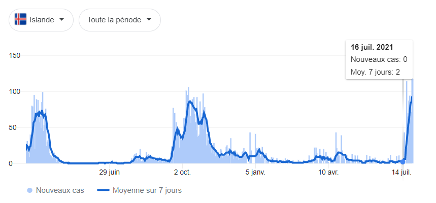 Pour ceux qui croient que le vaccin protège de la contamination , l’Islande vaccinée à 73%