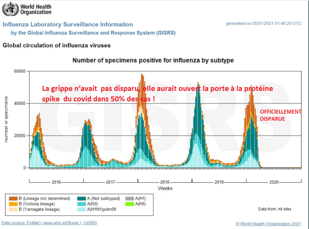 La grippe n’avait pas disparu, elle aurait ouvert la porte à la protéine spike du covid dans 50% des cas!