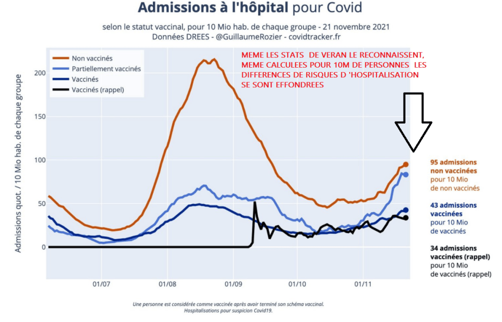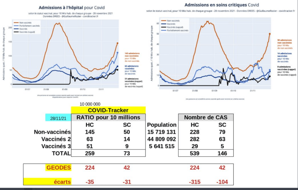 On lira 113,48 hospitalisés non vaccinés en novembre par effectif de 10 000 000 de personnes en sachant que…. on sait pas très bien combien il y a de non vaccinés