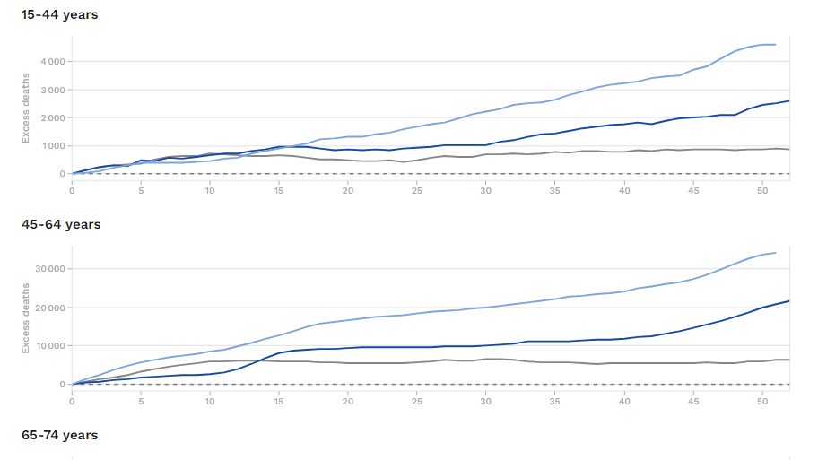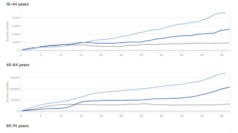 Selon Davidson, l’augmentation des décès représente « des nombres énormes, énormes », et les décès ne concernent pas les personnes âgées, mais « principalement les personnes en âge de travailler de 18 à 64 ans » .