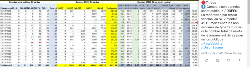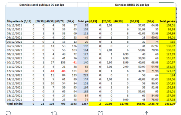 Le 5 décembre 29 personnes sont mortes , la Drees en trouve 42,61 rien que pour les non vaccinés