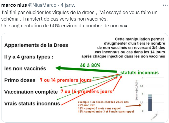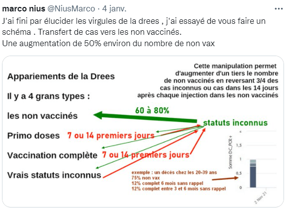 En France l’escroquerie a la peau dure , la DREES affirme même qu’une majorité de non vaccinés sont en soins critiques et que 40% des décés sont non vaccinés