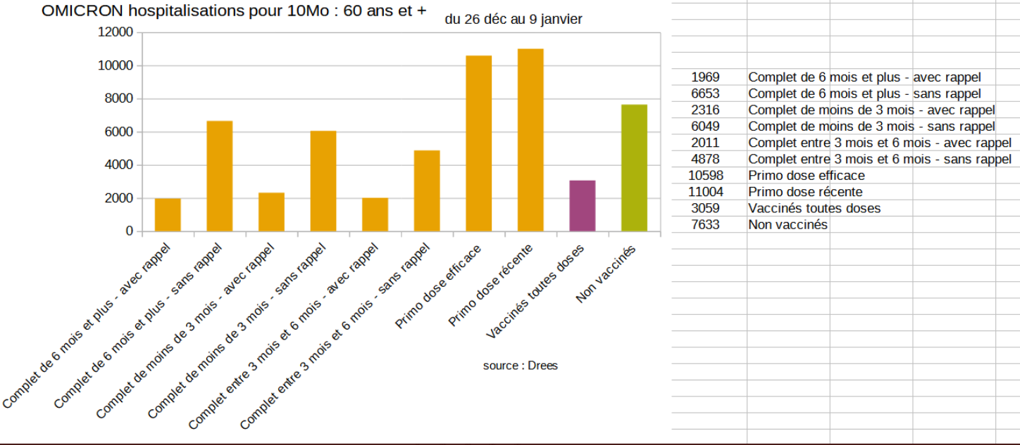 Cependant, cette grosse vague des deux premières semaine correspond peut-être à un taux de cas qui aurait perduré sans la vaccination, et dans ce cas, l’aspect de ces courbes suggérerait plutôt une amélioration notable due à la vaccination, avec ce délai de 15 jour nécessaire à la concrétisation progressive de l’effet vaccinal.