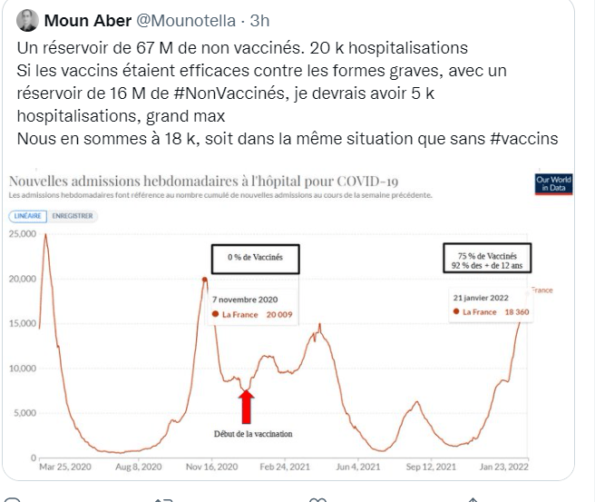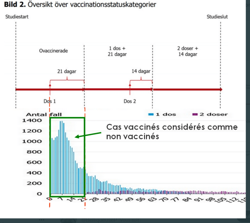 Ces courbes montrant les cas de covid dans les 15 jours post vaccinaux considérés comme non vaccinés sont en effet extrêmement troublantes. Le Pr Raoult en a montré une semblable le 11 janvier dans son interview hebdomadaire sur youtube IHU Méditerranée Marseille (à 18:00 mn), provenant de santé publique Ontario, en suggérant qu’il s’agit peut-être d’un effet du aux anticorps facilitants