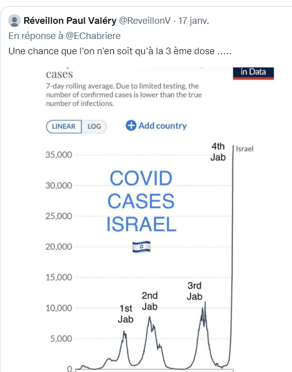 Selon le responsable, pas moins de 3 millions d’Israéliens seraient déjà infectés au-delà des chiffres officiels, l’Etat hébreu est actuellement le numéro un mondial, avec le plus d’infections par habitant depuis la semaine dernière. Le scénario est classique la presse annonce que la quatrieme dose protège bien plus que la troisième (qui elle serait retombée au niveau de protection des non vaccinés) Scénario classique des opioïdes; toujours plus en quantité pour des effets de plus en plus réduits et une dépression forte…