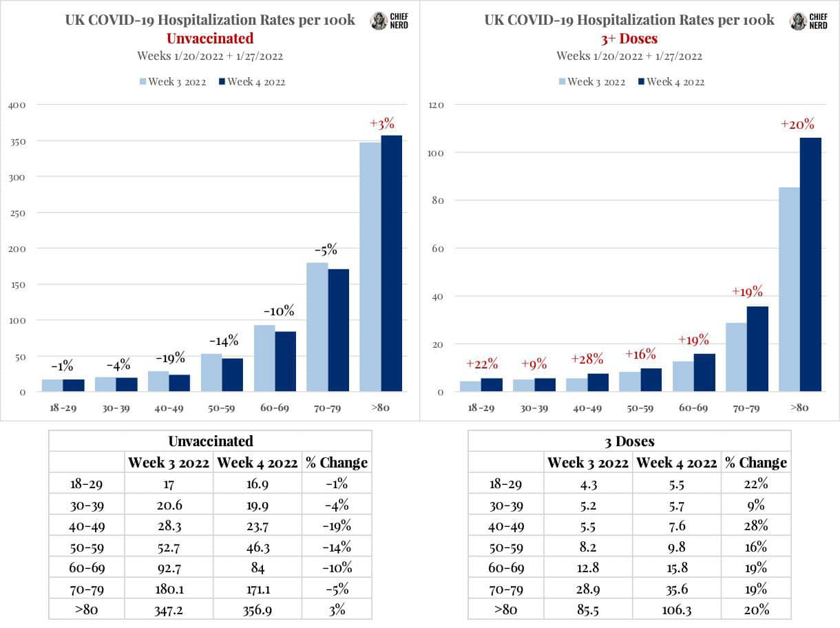 En une semaine , face à omicron chute rapide de l’efficacité des trois doses UK ci dessus