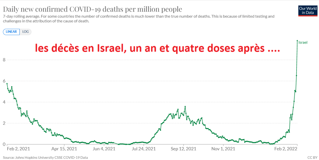 C’est pareil chez nous. Ces TV-toubibs ou médecins de plateaux Tv qui n’ont eu de cesse de répéter la doxa officielle (en étaient-il convaincus, auquel ca il faut se poser de sérieuses questions sur leur… incompétence !), sont obligés devant les faits et les chiffres de reconnaître l’inefficacité de ces injections, mais chassez le naturel, il revient au galop. La conclusion est systématiquement la même, « faites-vous « vaxxiner » ».