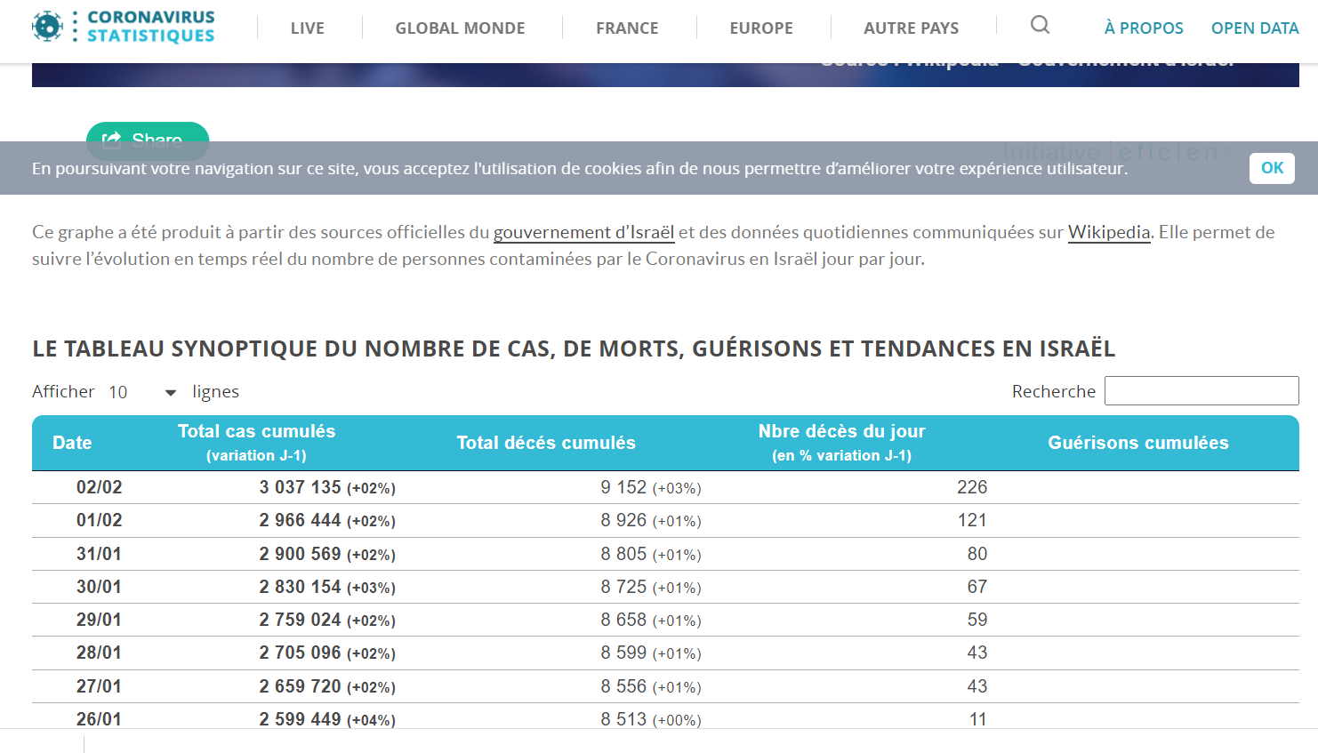 Les Veran israeliens fournissent des données differentes de Oneworldata mais elles ne remettent pas en cause le retour à des taux records comparables à la situation d’ il y a plus d’un an