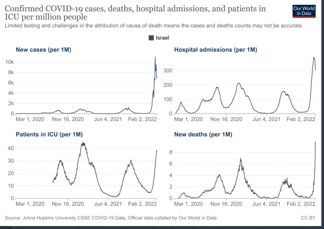 Le professeur Jeris, ainsi que d’autres administrateurs tels que le Dr Roi Ilan, directeur de l’USI du Rambam Health Care Campus à Haïfa, ont également déclaré que les hôpitaux ne sont pas débordés en raison des cas graves ; ils sont débordés à cause du nombre de cas positifs, qui est plus élevé chez les vaccinés.