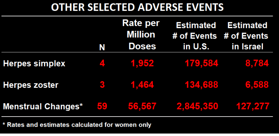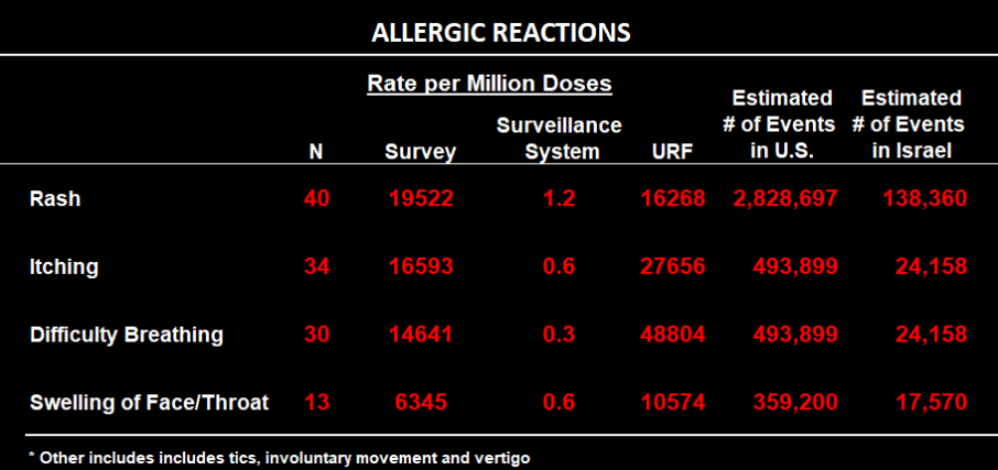 Au niveau de ces effets graves, on sait en particulier que des thromboses sont dues directement à la vaccination, ainsi que des myocardites et péricardites, AVC etc. avec des taux élevés de D-dimères (marqueur de la coagulation) et de CRP (protéine C réactive : marqueur de l’inflammation) (Greinacher A et al., 2021) (Diaz GA et al., 2021) (Dionne A et al., 2021).