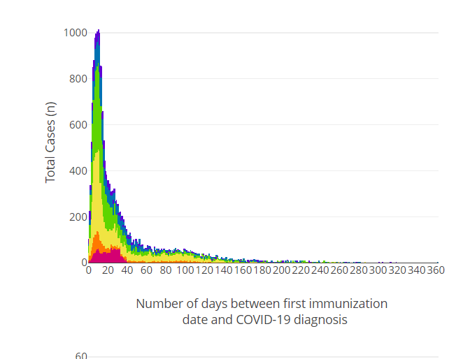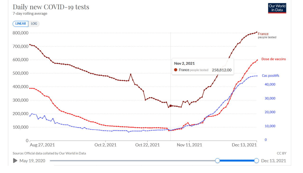 -Une explosion anormale des cas de covid dans les 15 jours qui suivent l’injection ; au point de ne pas compter dans les vaccinés tous les malades dans les trois semaines post vaccination . Personne ne peut croire que cette anomalie puisse résulter d’une exposition pré vaccinale à la covid