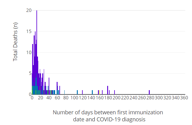 - Une explosion des hospitalisations et des décès covid dans les trois semaines qui suivent l’injection mais là encore les stats sont rares de tels cas diagnostiqués juste après la vaccination sont systématiquement classées non vaccinés. Heureusement nous avons l’Alberta , seule la catégorie des plus de 75 ans est concernée. On comprendra mieux la vague de décès post vacc dans les Ehpad en 2021