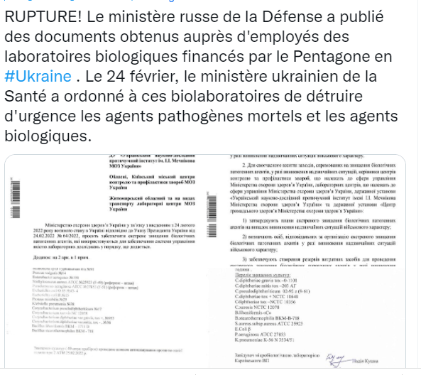 Jusqu’à hier, il s’agissait de « fake news » et de « théorie du complot ». La sous-secrétaire d’État Victoria Nuland vient de confirmer que #Ukraine dispose d' »installations de recherche biologique », lorsqu’on lui a demandé si l’Ukraine possédait des armes biologiques. Elle a également déclaré que les États-Unis craignaient que la Russie obtienne « ces matériaux de recherche »