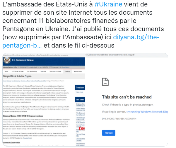 L’Afp a une fois de plus menti …Les médias américains ont implacablement diffamé@dgaytandzhieva pour ses enquêtes acharnées sur les laboratoires biologiques financés par le Pentagone en Europe de l’Est. Il s’avère qu’elle avait raison.