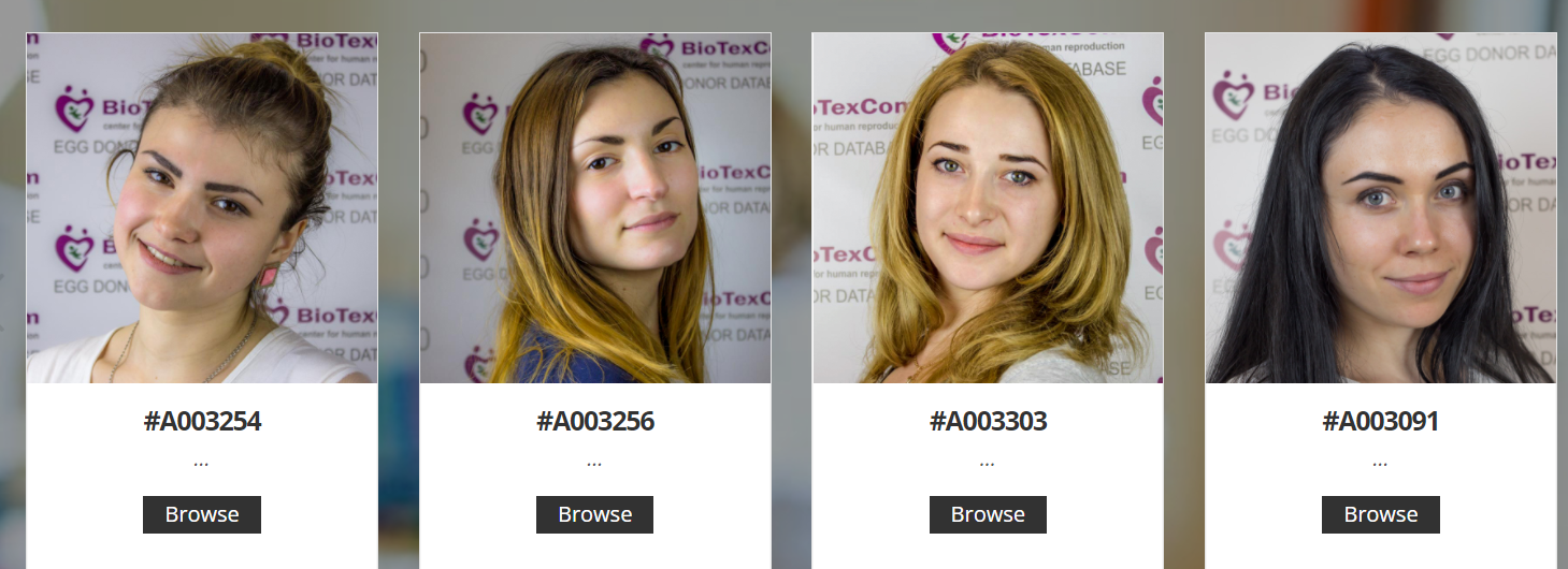 Nous offrons un grand choix de donneuses d’ovocytes en la présence de plus de 400 femmes âgées de 19 à 29 ans. Pour que votre choix soit le plus éclairé possible, vous pourrez sélectionner plusieurs donneuses), découvrir leurs photos et vidéos, un modèle 3D ainsi que d’autres informations générales.