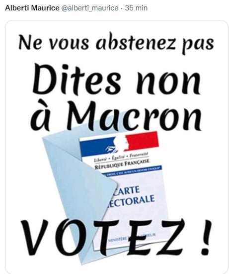 Aux urnes citoyens contre le p’tit facho et que nos voix dispersent les macroniens.