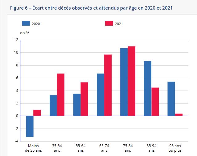 En 2021, il y a eu 6,3 % de décès de plus qu’attendus, contre 7,5 % en 2020. Cet écart, que l’on peut qualifier de « surmortalité », n’est donc en 2021 que légèrement inférieur à celui de 2020…La vaccination n’aurait elle servi à rien ?