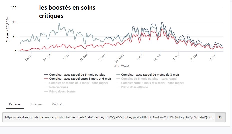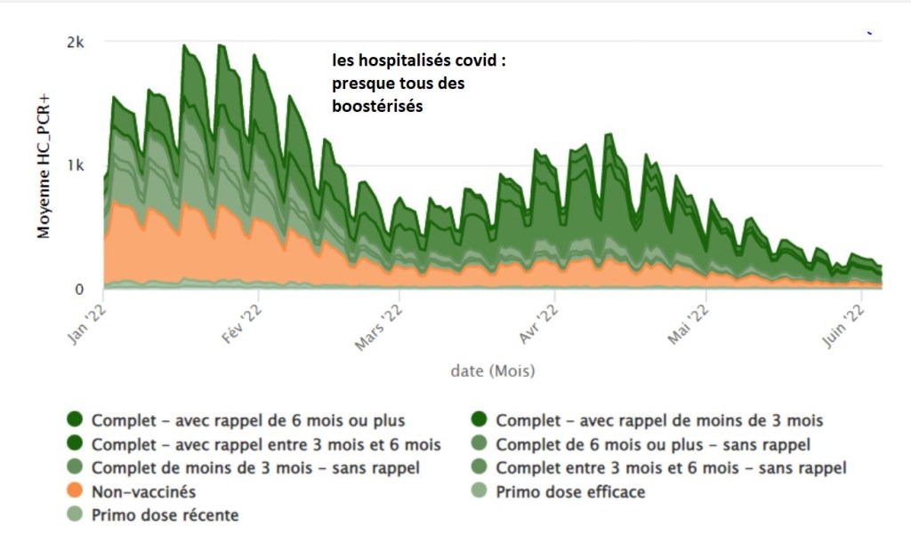 Le nombre de malades boostés est plus important à l’hôpital en raison du grand nombre de sujets boostés dans la population générale, mais rapportés à la population des sujets boostés ils reste inférieur à celui des non vaccinés.