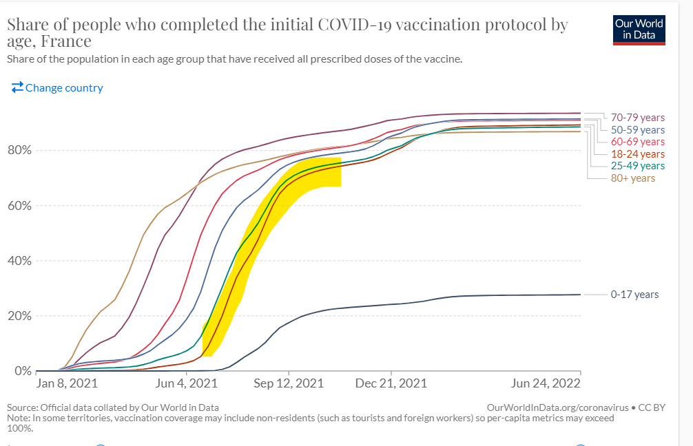 Au sud de la Méditerranée, assez peu de gens vaccinés, pas de vagues Covid à répétition, et on fait des enfants. Il y a, je pense, la volonté d’accélérer le grand remplacement des Européens en favorisant la dénatalité et les avortements d’un côté, et l’immigration de l’autre (tous les jours, des centaines de migrants, majoritairement musulmans, débarquent en Italie et en Grèce, bien qu’on en parle plus : c’est une invasion organisée lente, silencieuse, pacifique).