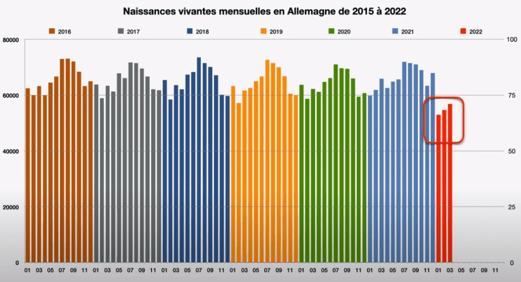 Il serait intéressant de connaitre le taux de fausses couches et d’avortements pour faire la différence entre l’argument psy (l’envie) et la contrainte (la carence physique). Si les statistiques des bébés malades augmentent 9 mois après les campagnes de vaccination, la réponse est évidente. Maintenant, il reste à connaitre le déficit cognitif et physique de la génération pfizer