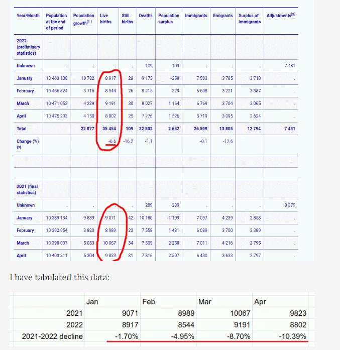 Pourquoi donc les naissances de mars avril et mai 2022 sont elles moins nombreuses qu’à la même époque l’an dernier? Le phénomène n’est pas contestable dans les pays industrialisés mais également les plus vaccinés .