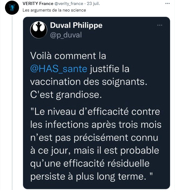 Je retiens également les positions « très tranchées » de certains TV toubibs très médiatisés, Cymès, Pelloux, le nouveau Ministre de la Santé, Le Véreux, bien sûr, sans oublier la clique d’épidémiologistes (si certains sont de purs mathématiciens ou statisticiens, d’autres sont « Docteurs en Médecine », tels Blachier, champion de retournement de veste) à la petite semaine n’ayant jamais vu un patient de leur vie.