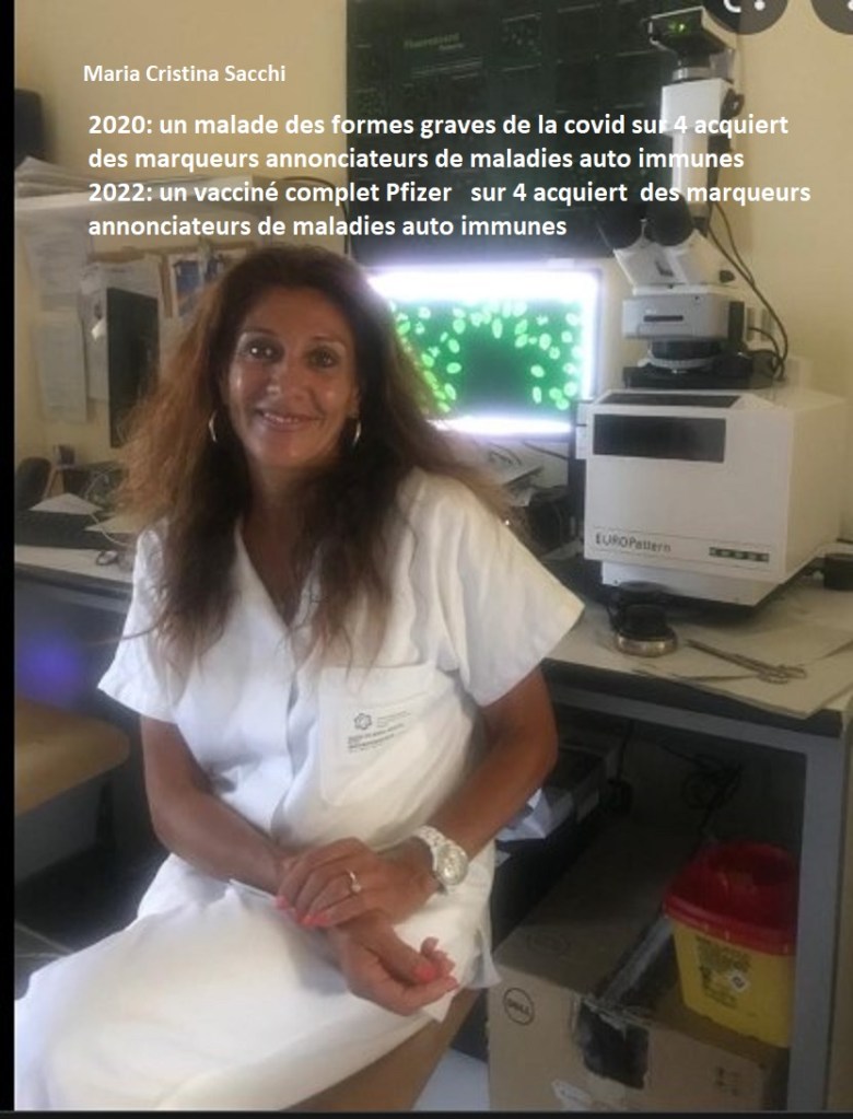 Maria Cristina Sacchi  et son équipe travaillent sur les maladies auto immunes , une étude démontre que le Pfizer provoque autant de risques d’en avoir une qu’ un covid sévère entrainant une hospitalisation