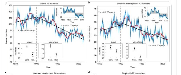 Nature .:Baisse du nombre de cyclones depuis 1850 pour quand on vous dira que le réchauffement provoque plus de phénomènes extrêmes . à mon avis aucun lien entre les 2 . Bien qu’ils l’explique par la hausse des T° contrairement à ce qu’ils racontaient avant https://nature.com/articles/s41558-022-01388-4 Marco NIUS