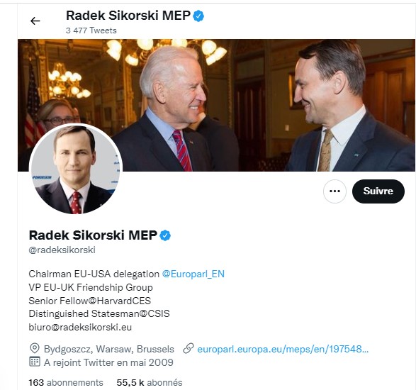 LE DEPUTE POLONAIS PRO AMERICAIN SIKORSKY REMERCIE LES USA POUR LEUR SABOTAGE