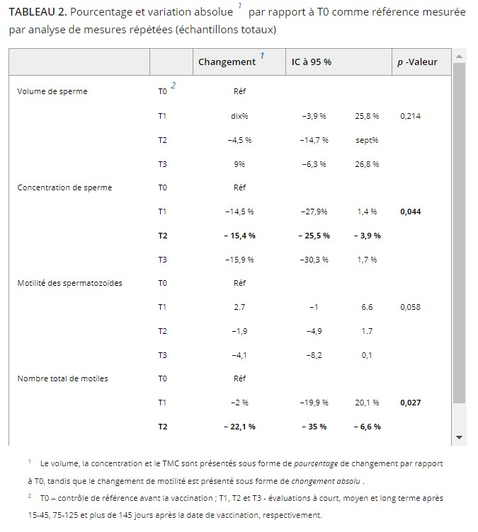 Cette publication faisait état d’une altération passagère de la qualité du sperme post-vaccination. https://onlinelibrary.wiley.com/doi/10.1111/andr.13209… Une lecture attentive révèle que la moyenne de spermatozoïdes ne réaugmente pas, seule la variance augmente